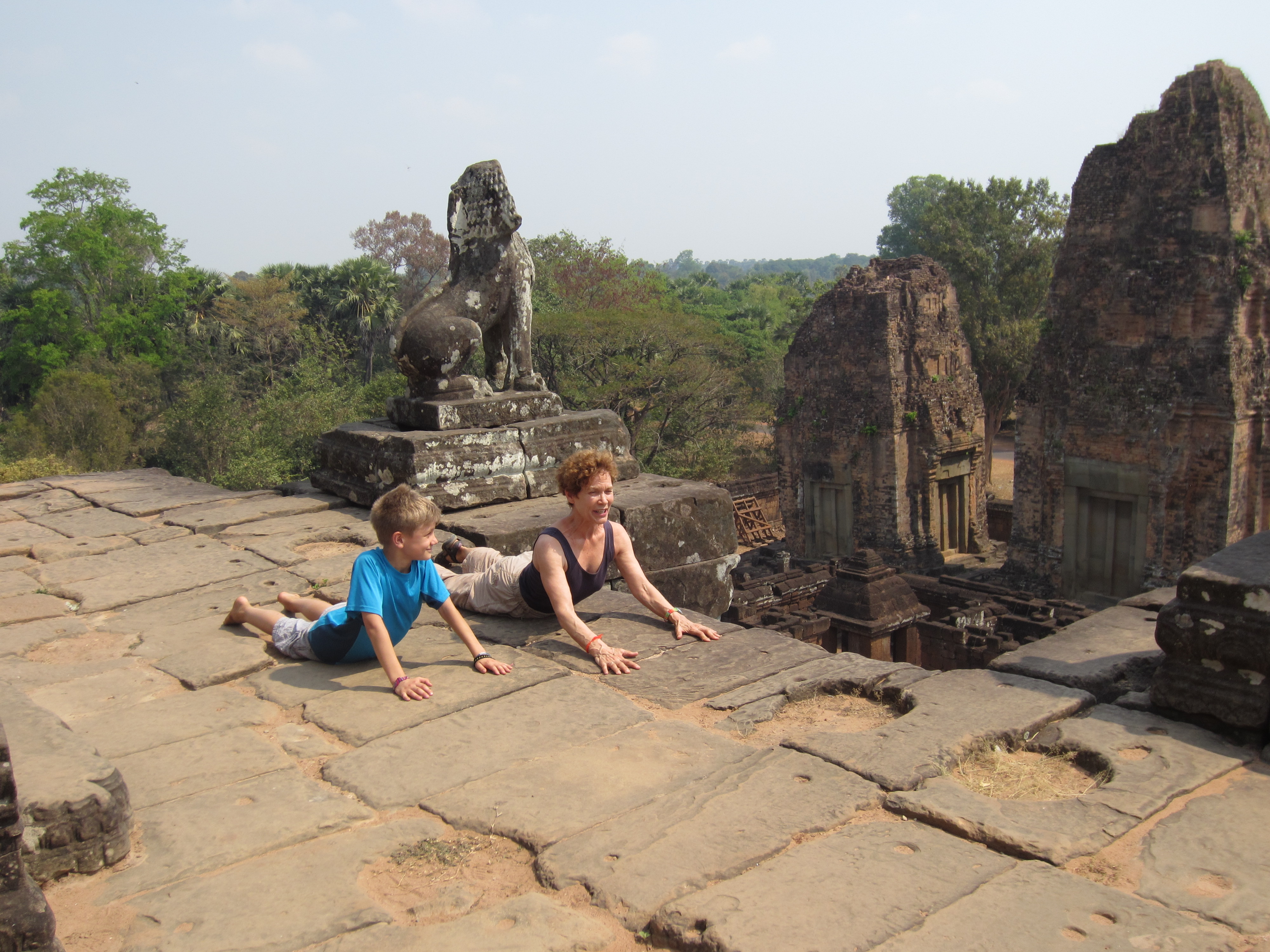 Coco and boys in Hanoi restaurantRide ’em Coco!Coco in back of bouncy Land Rover, Luang Prabang, LaosCoco and her boys pulling in to jungle camp, Nam Ha NPA, LaosCoco riding to KampotCoco in Tree pose at Thommanon Temple, CambodiaCoco and Braxton in Lion pose, Angkor Wat, CambodiaKampot by bikeCoco swinging at Lazy Beach, Koh Rong Saloem, Cambodia