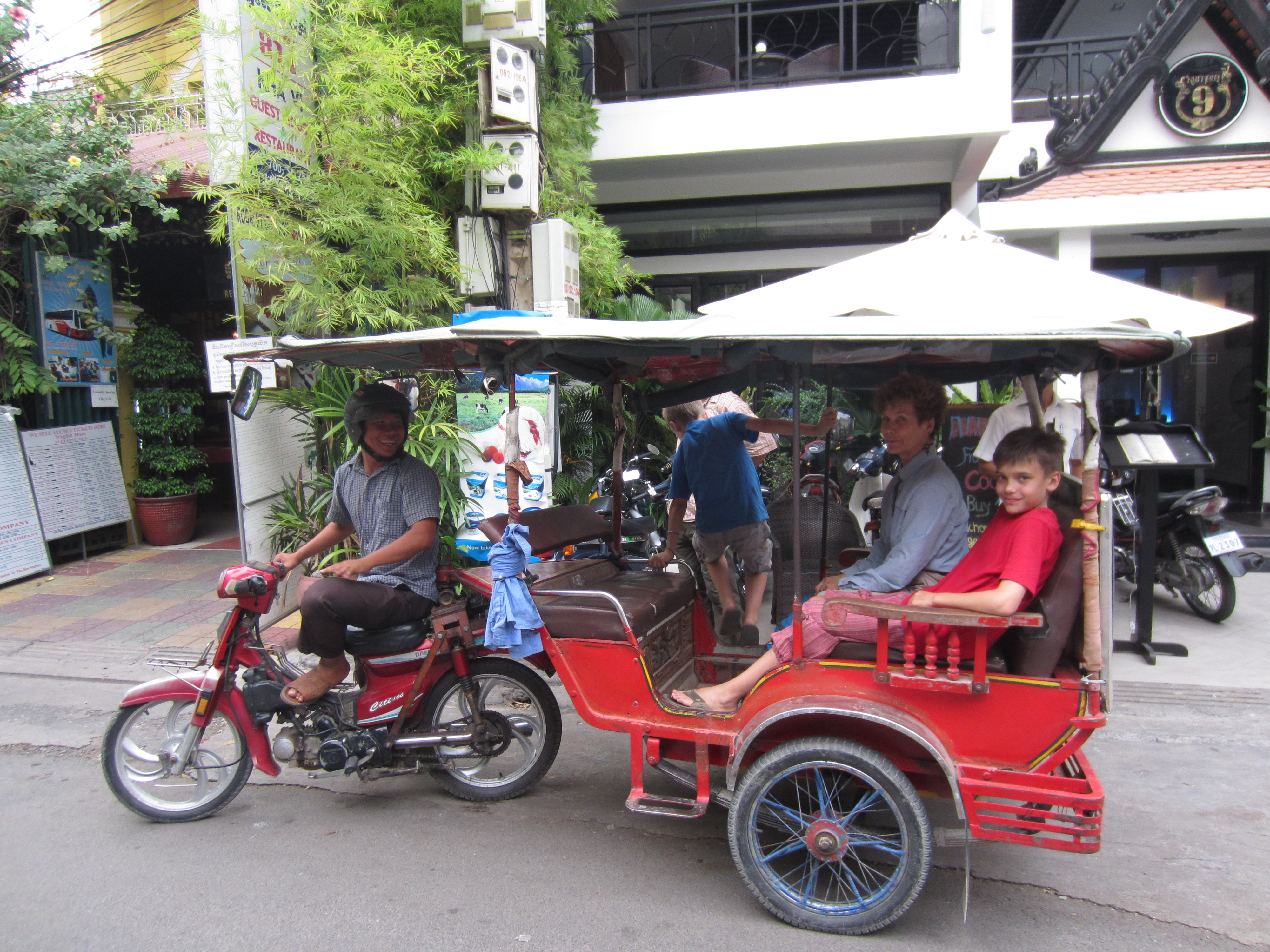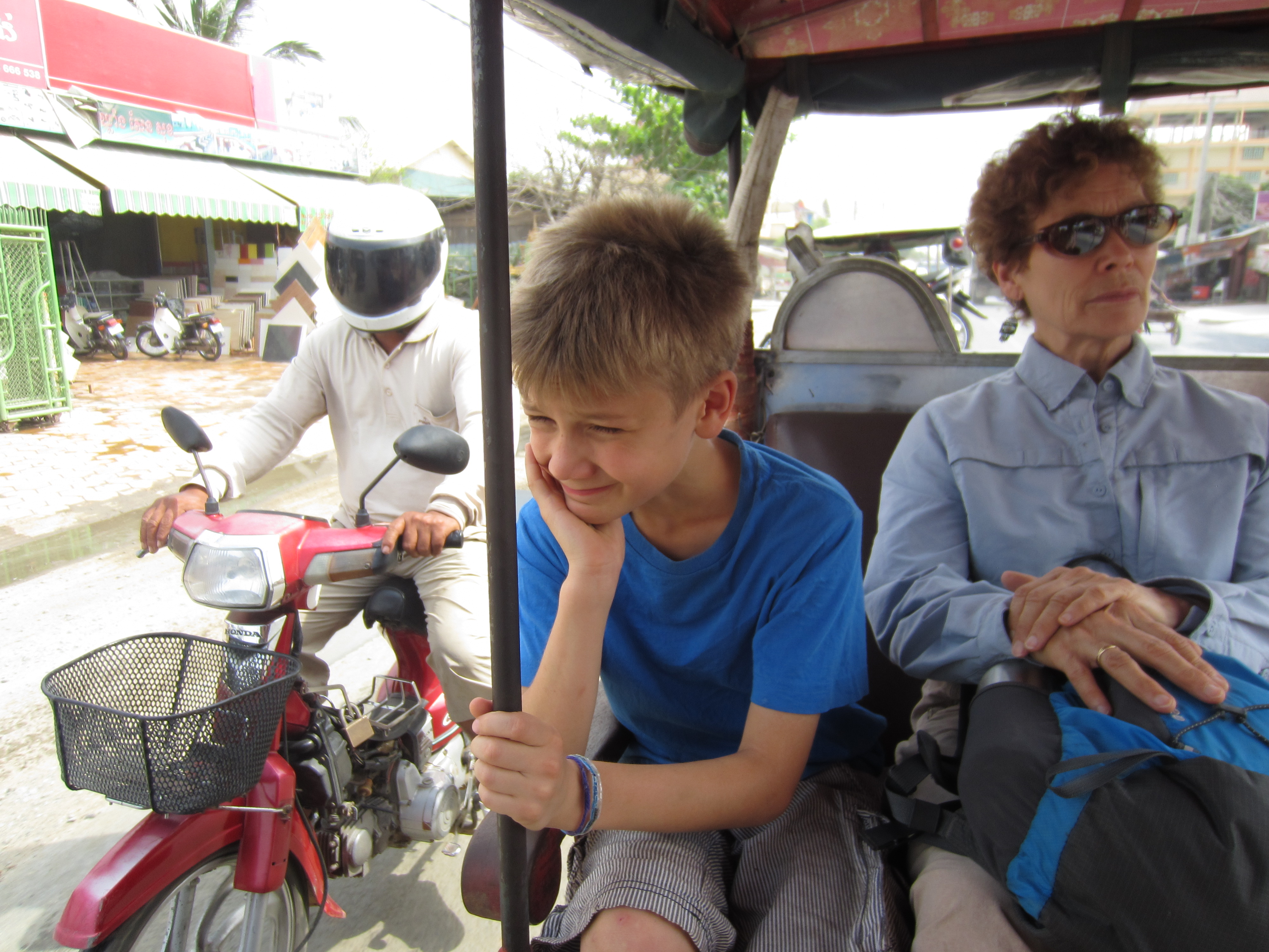 Braxton engaging in cross-cultural exchange from back of tuk tuk, Phnom Penh, CambodiaOur wonderful tuk-tuk driver and teacher of Cambodian history and politics, “Tree”