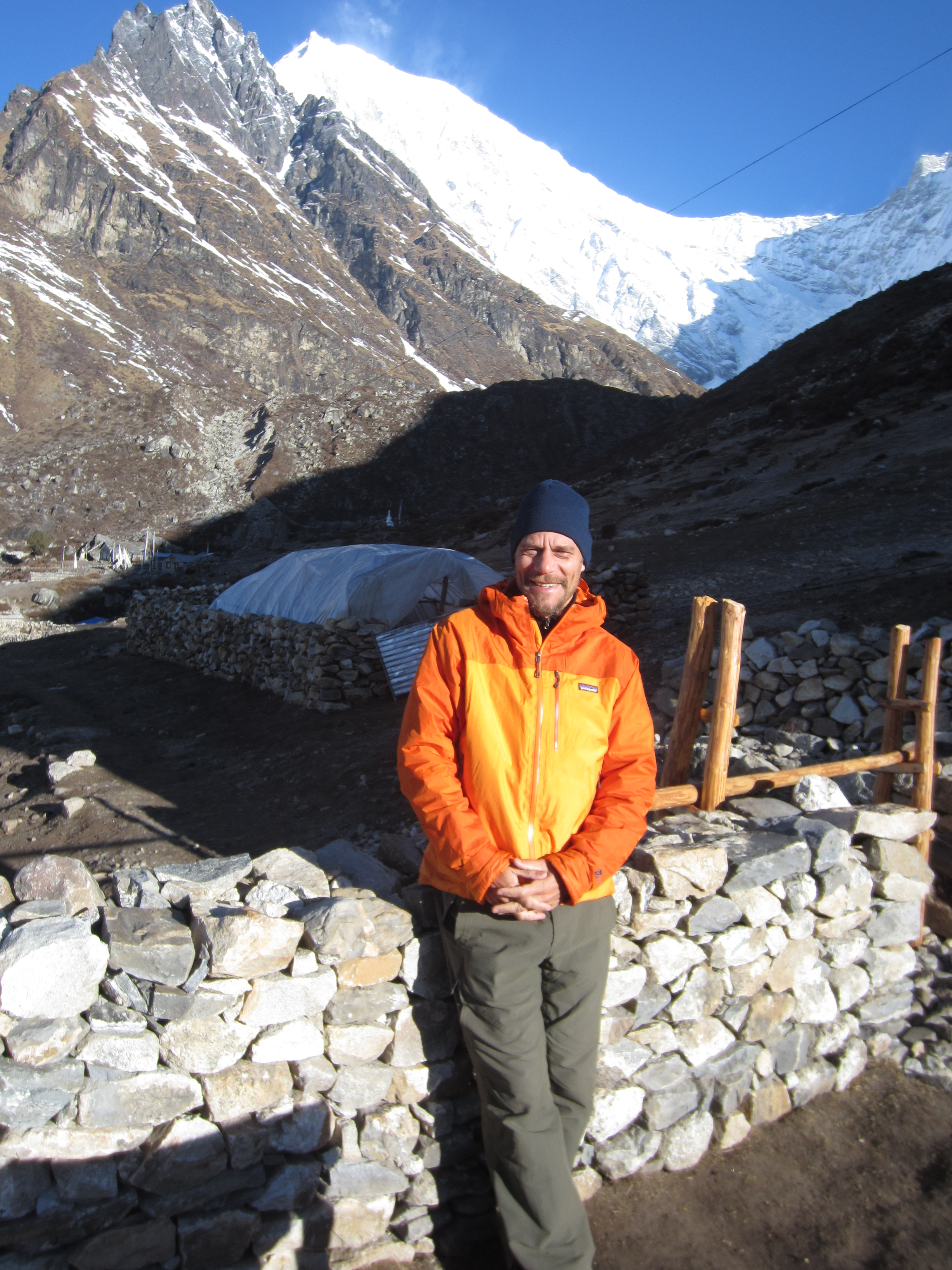 Here you are either walking up or walking down, and the ups and downs are massive. Our 12-day trek started at the end of the road in the town of Syaprubesi (1500m x 3.3 = 4950ft) and took us up the Langtang Valley over the following five days to the settlement of Kyanjin Gompa (3900m) with a day trip to the nearby “hill” of Kyanjin Ri (4600m). The return trip took us back down the river to Bamboo (1950m) before heading back up through the relatively large (and uniquely electrified) town of Thulo Syaphru (2250m), the tiny two-house Foprang Danda and the beautiful views from Laurebina Yak (3900m). On our final day we descended from Laurebina Yak to the roadside town of Dunche (1900m) to catch a bumpy, windy, 6-hour jeep ride back to Kathmandu on roads with precipitous drops through switchbacks and landslides. For those of you doing the math, the last day’s descent was the equivalent of walking down from the peak of our highest east coast mountain, Mt. Mitchell (2037m), to sea level.