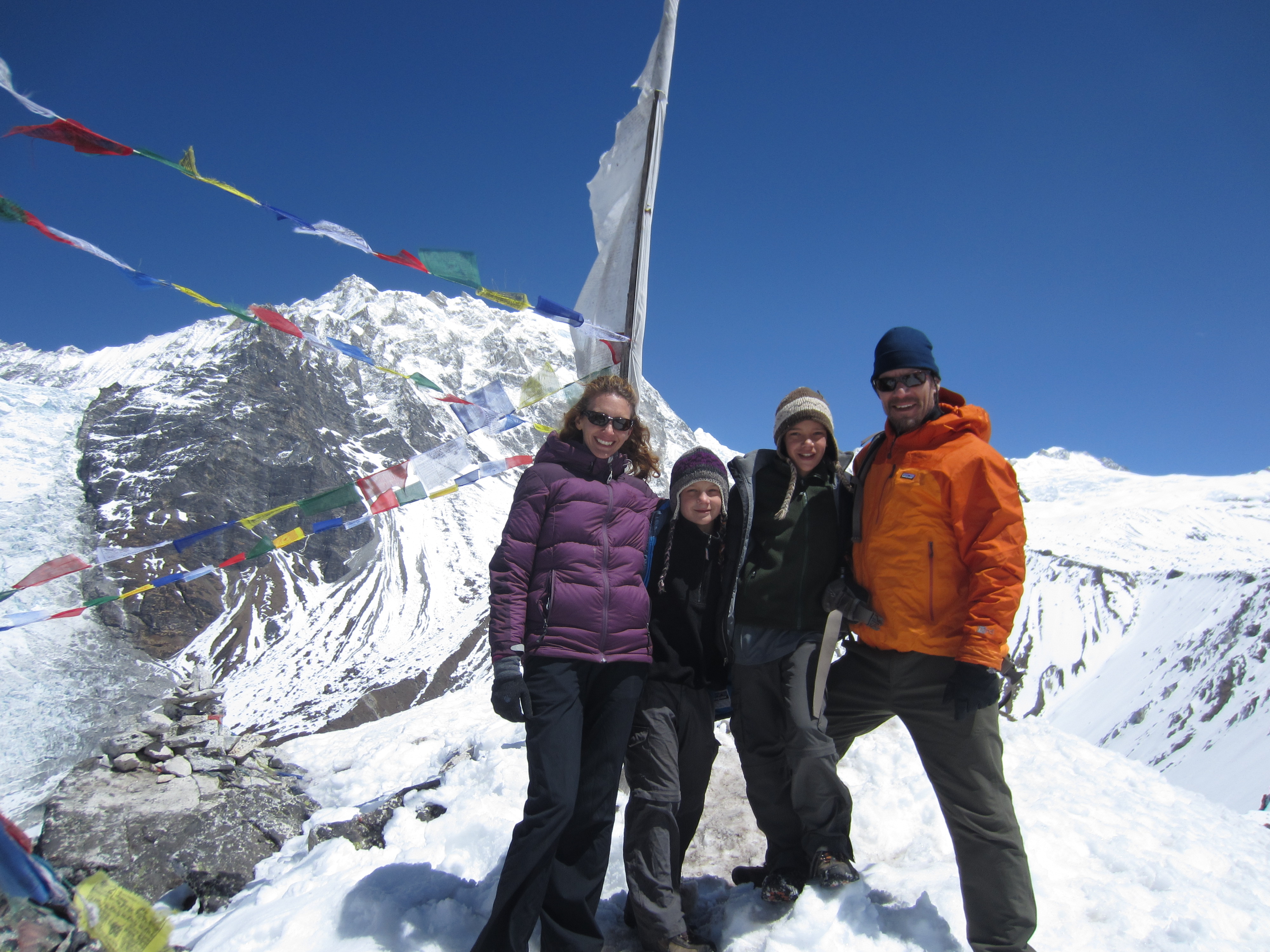 Opening with a family photo atop a snow covered peak surrounded by stunning mountain scenery is an irresistible gimmick. Sorry. Getting high into the Himalaya was one of the goals of this trek, but getting there and back made up the bulk of the experience.