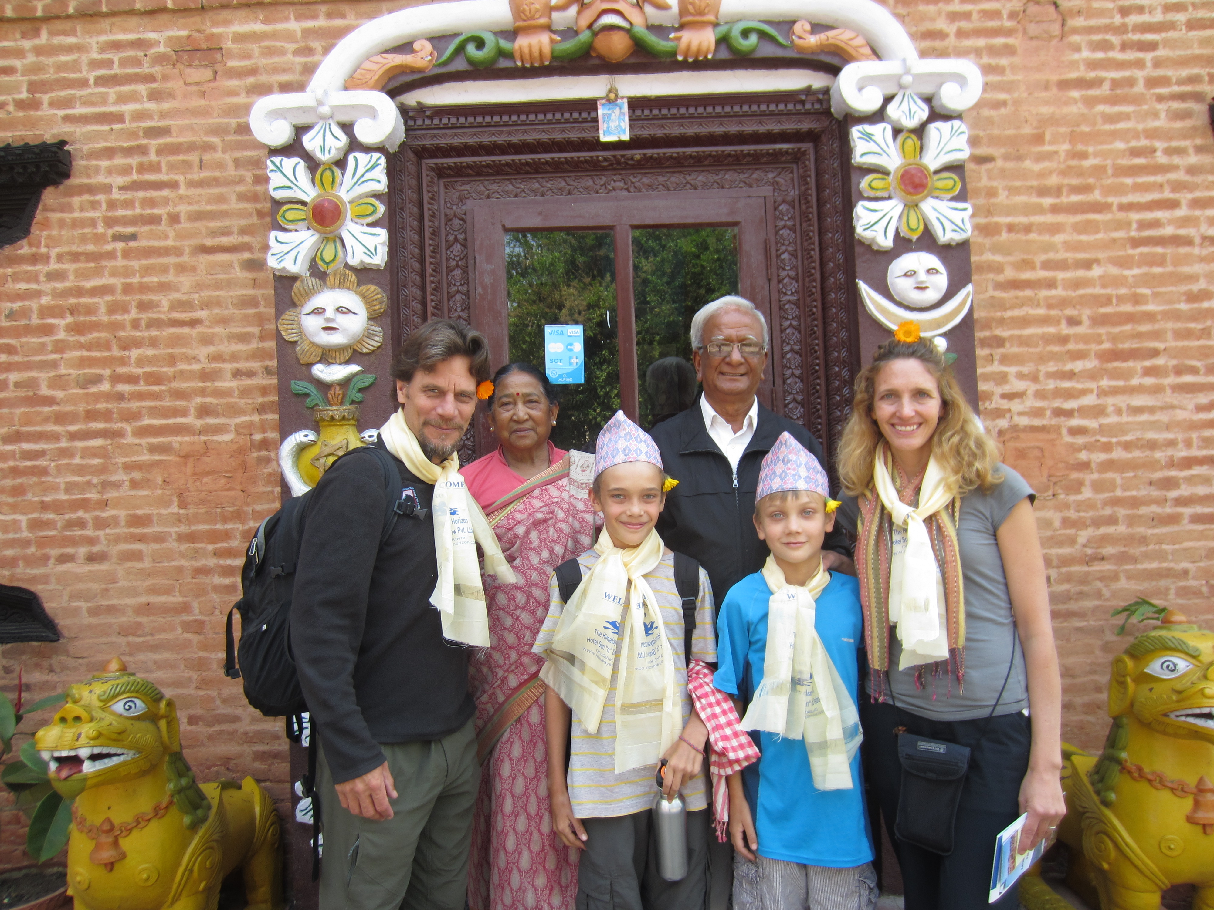 We had the pleasure of meeting Mr. B.P. Shresta of Dhulikhel, Nepal during a two-day visit to his hometown set on the eastern rim of the Kathmandu Valley. We were introduced to B.P. by our family member, Dr. Jerry Bunker, who spent some time in Dhulikhel practicing medicine. “Bunker” (as B.P. fondly calls Jerry) and B.P. became friends and have maintained that friendship over the years and distances. We benefited greatly from the Bunker-B.P. connection when we contacted B.P. and were invited to spend time with him and his family at their hotel, the Himalayan Horizon, named for the magnificent mountain views from the rim of the valley. Clouds obscured the views most of the time we were in Dhulikhel, but meeting B.P. and hearing his story more than made up for the mountain-less scenery.